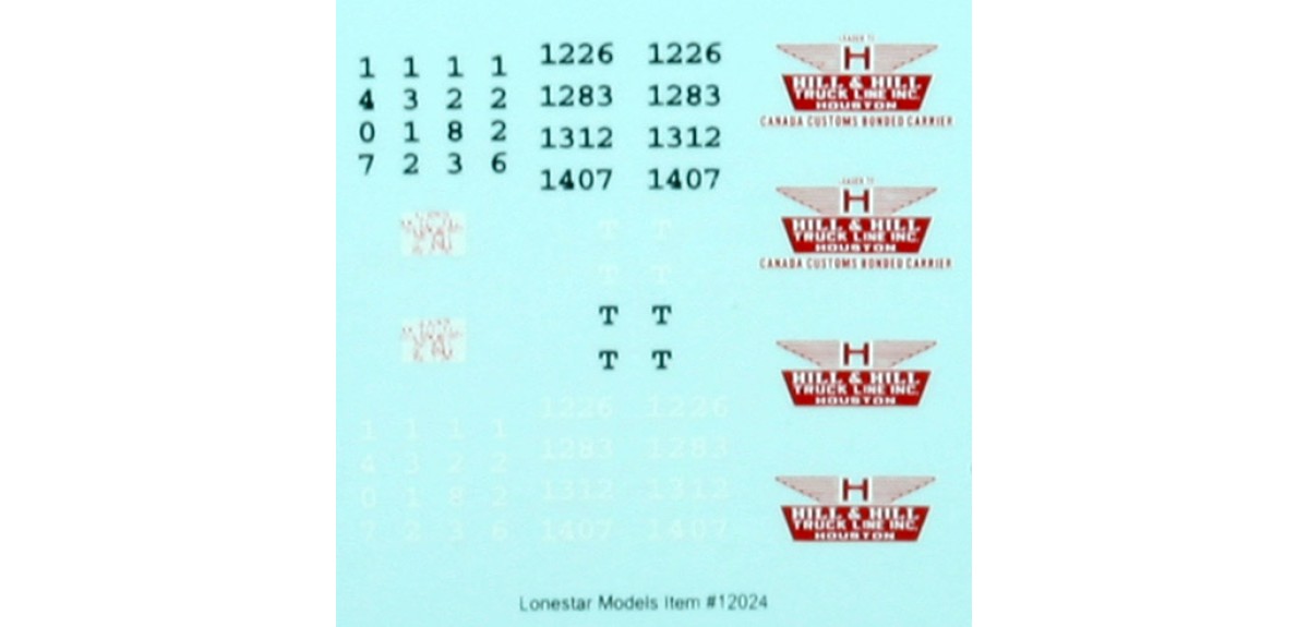 HO Scale Lonestar Models Hill & Hill Truck Lines Truck Tractor Decal Set (1)