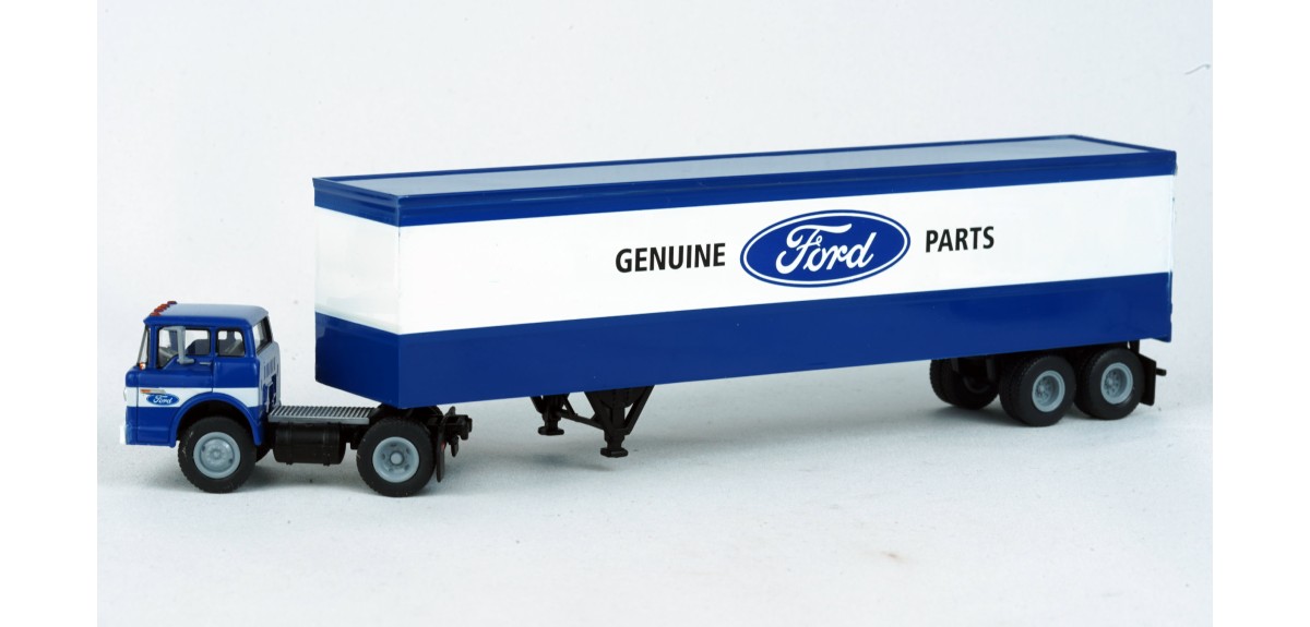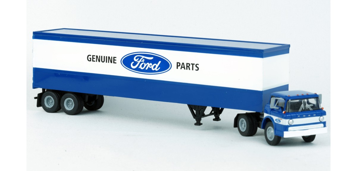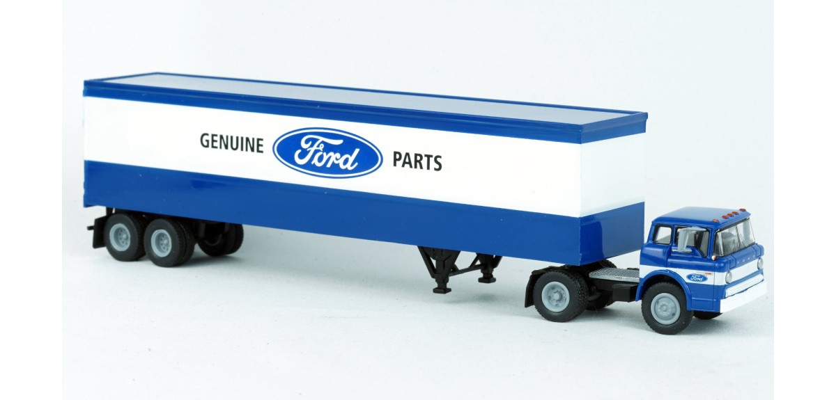 BR86328 HO Scale Brekina 1970 Ford C-Series COE Truck Tractor & 45; Trailer Blue/White - Ford Parts