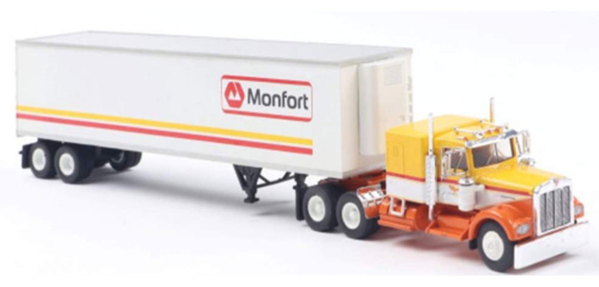 BRE86257 - HO Scale Brekina Kenworth W900 Tandem Axle Truck Tractor & 45' Trailer - Orange/White "Monfort" #2