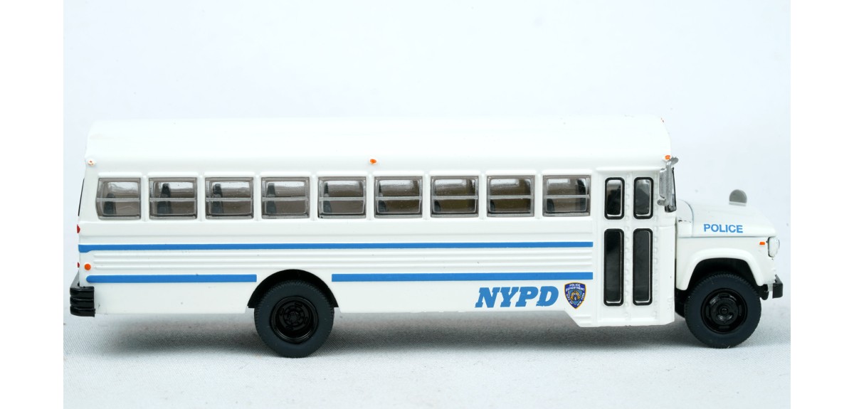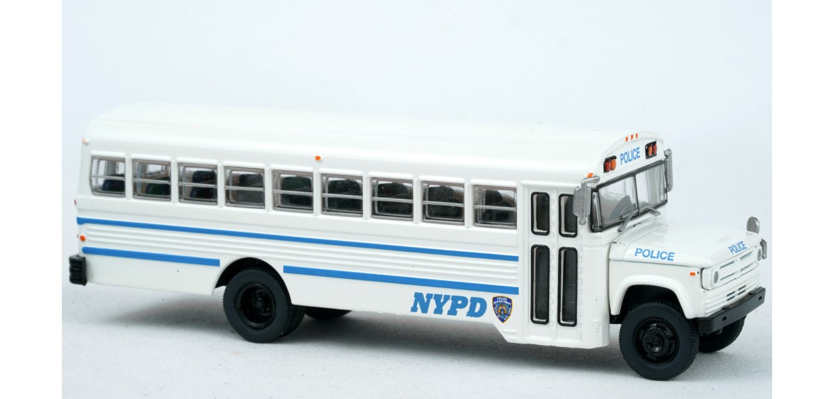 BR61332 HO Scale 1970 Dodge S600 School Bus - White NYPD