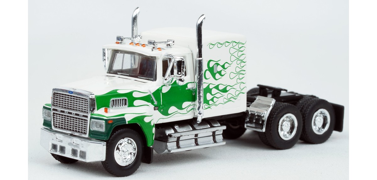 Tags: BR85879 HO Scale Brekina Ford LTL-9000 Truck Tractor White/Green Flames