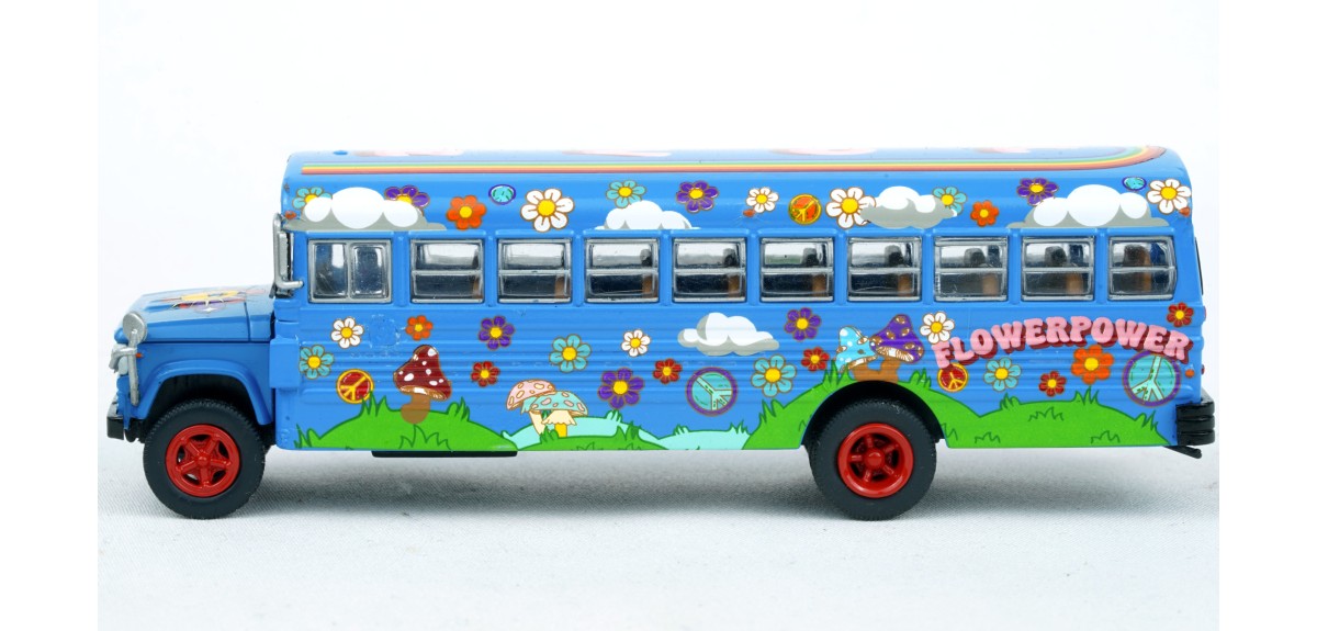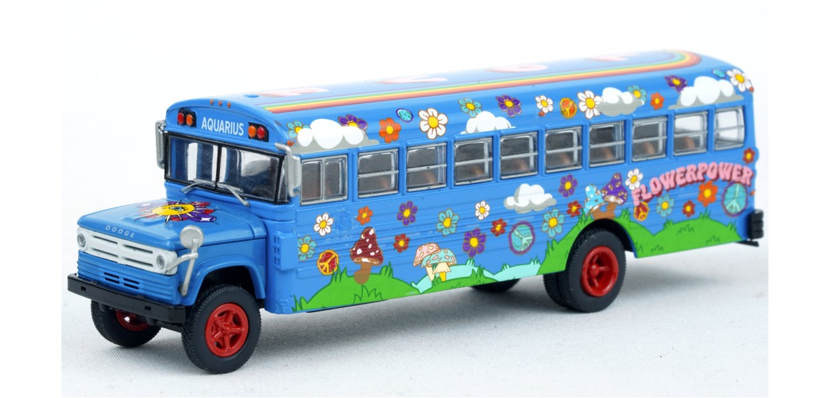 BR61334 HO Scale 1970 Dodge S600 School Bus - Hippie Flower Power