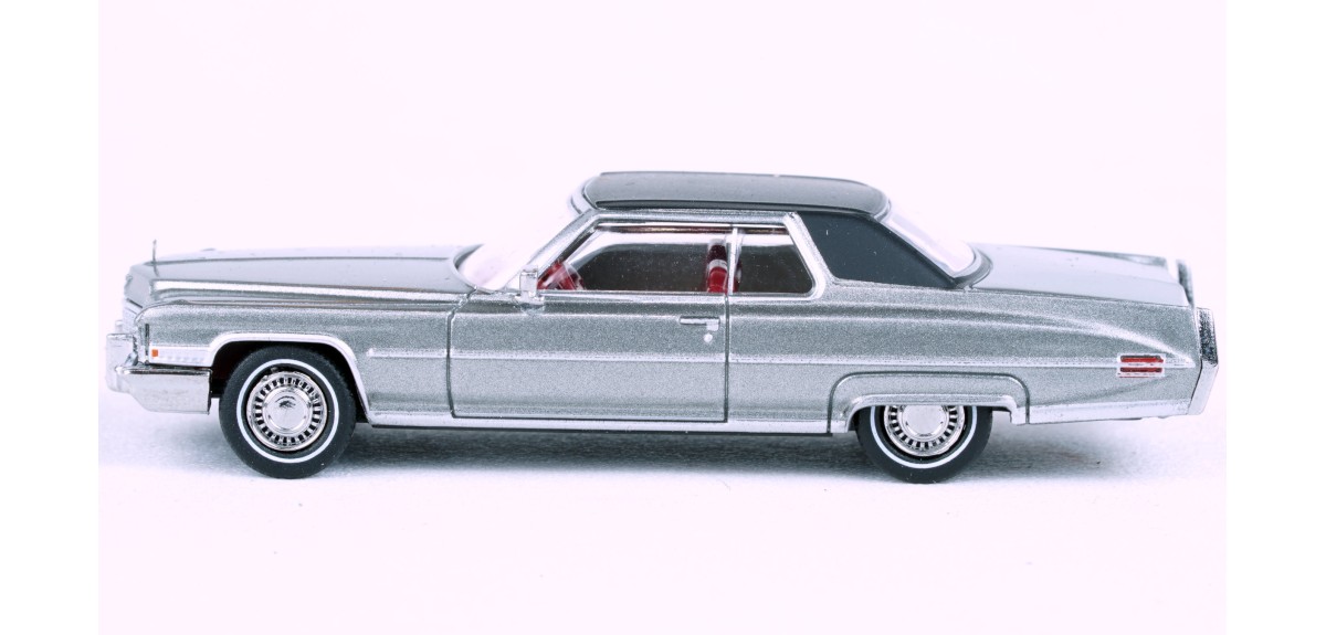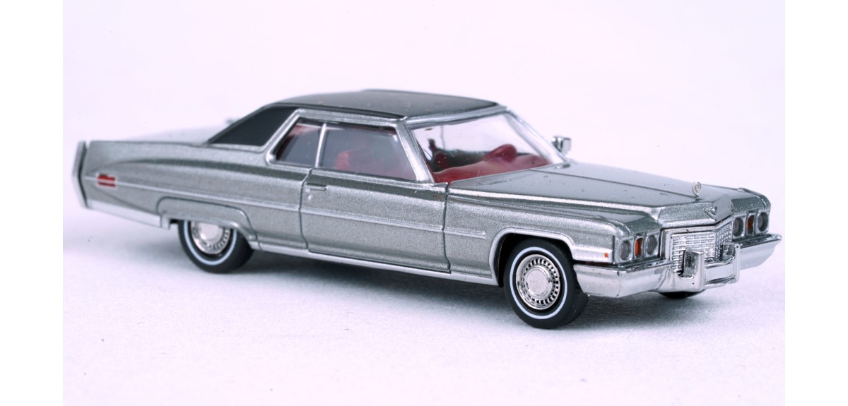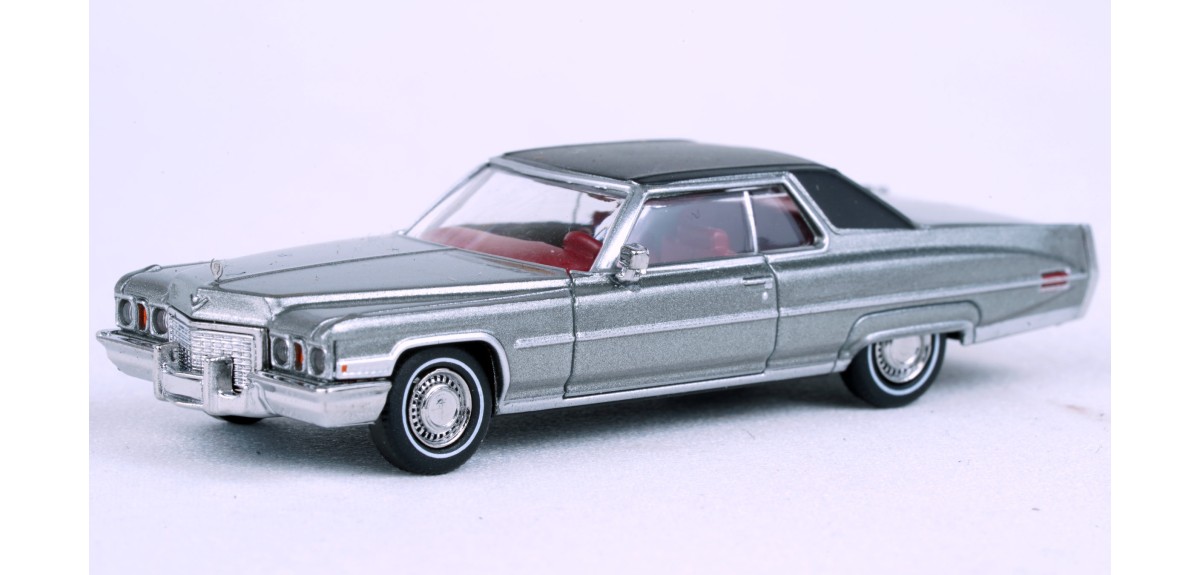 Brekina 1972 Cadillac Coupe DeVille Metallic silver paint, black simulated vinyl roof