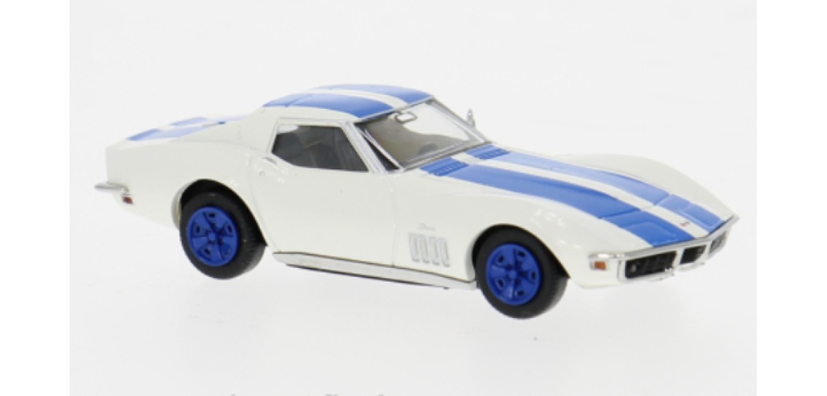 Brekina 1968-1972 Chevrolet Corvette C3 Coupe - White/Blue Stripes