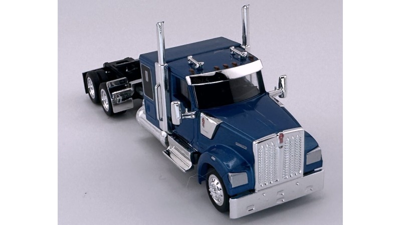 HL-990063 HO Logistics HO Kenworth W990 Flat Top Sleeper Two Axle Truck Tractor - Metallic Blue