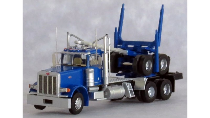 TRW47984 - N Scale Trainworx Peterbilt 379 Tandem Axle Truck & Logging Trailer - Blue