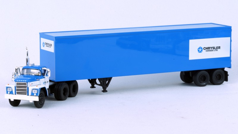 BRE86304 - HO Scale Brekina Dodge LCF CT-900 Tandem Axle Truck Tractor & 45' Trailer - White/Blue Chrysler Canada