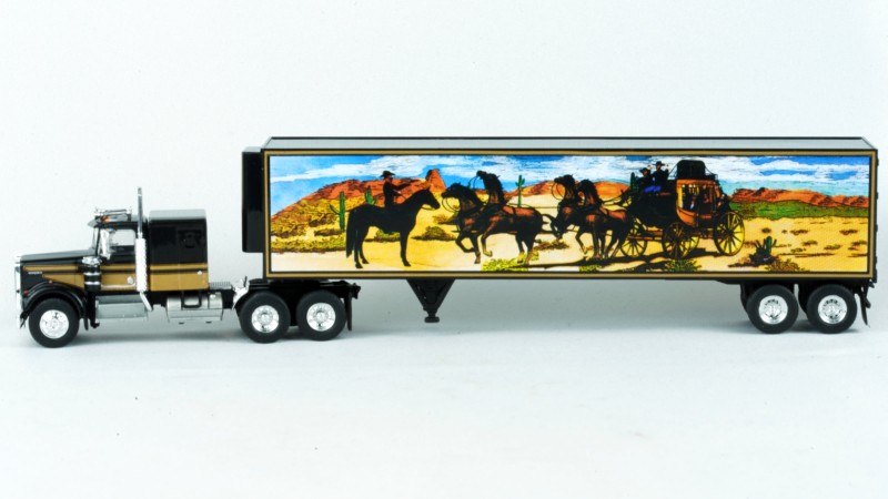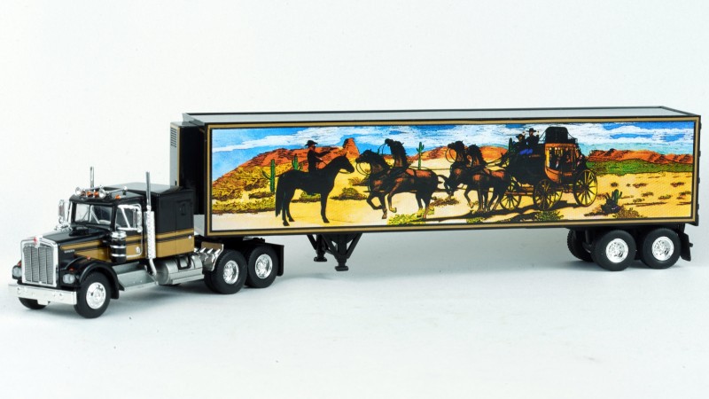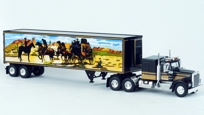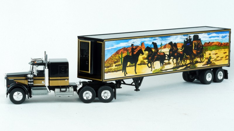 Tags: BRE86255 - HO Scale Brekina Kenworth W900 Tandem Axle Truck Tractor & 45' Trailer - "Snowman"