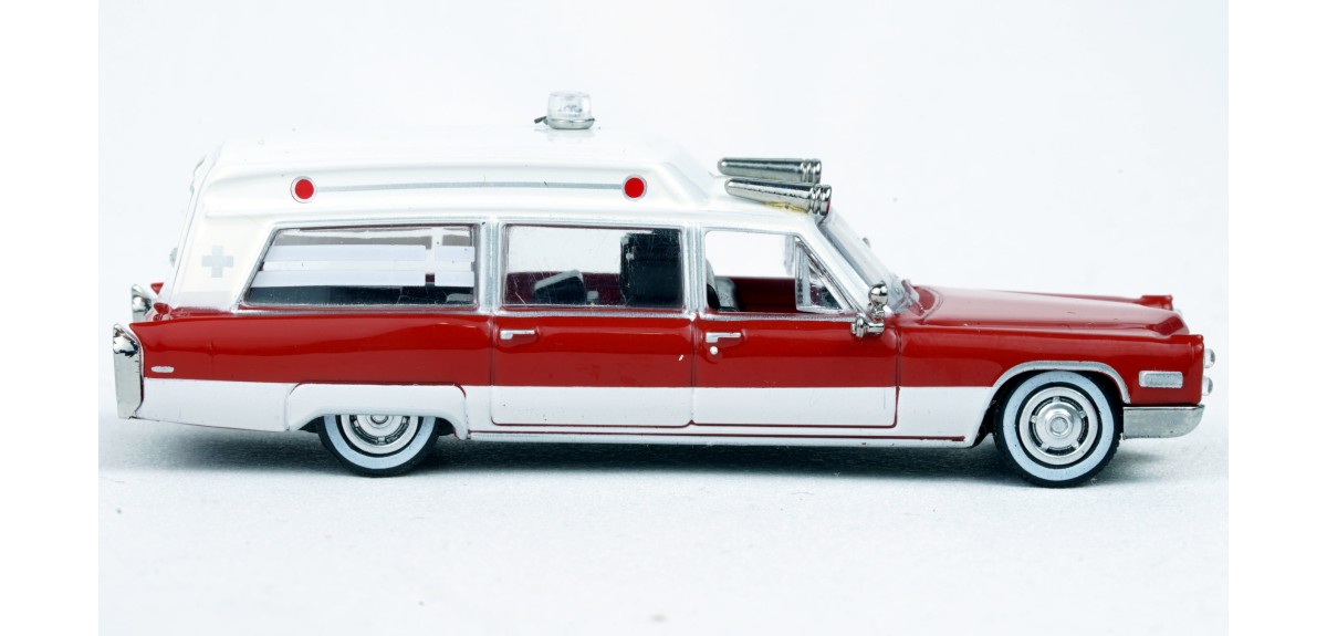 Brekina 1966 Cadillac Miller Meteor ambulance body Red & white paint
