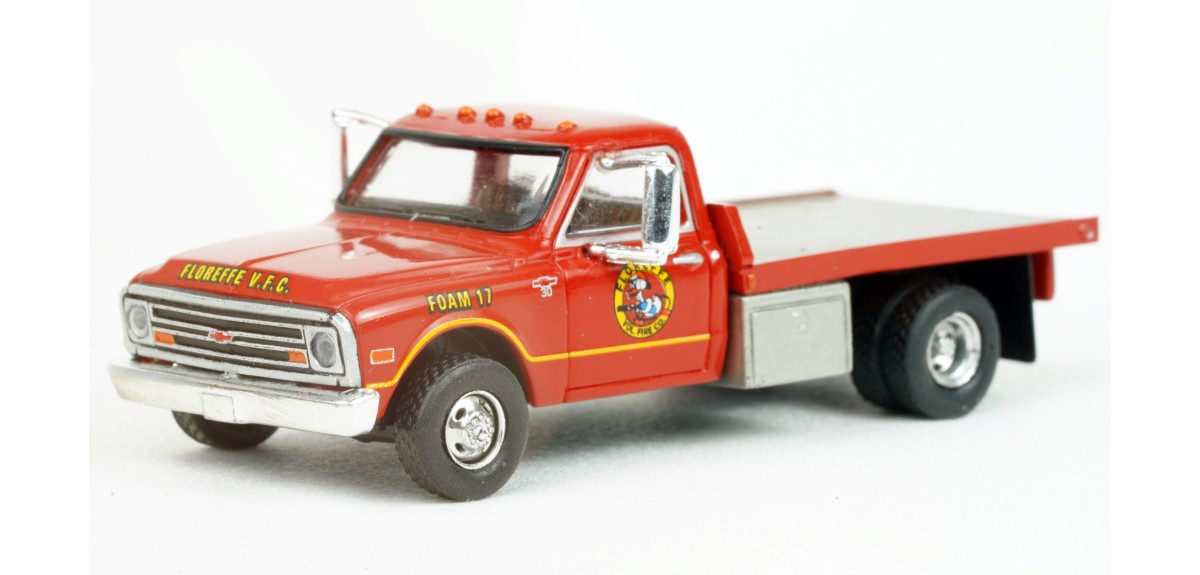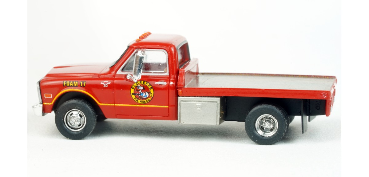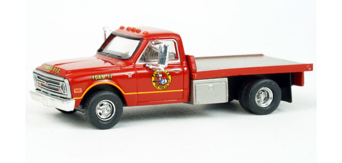 BR19671 - Brekina HO 1968 Chevrolet C30 Flatbed Truck - VFD Red