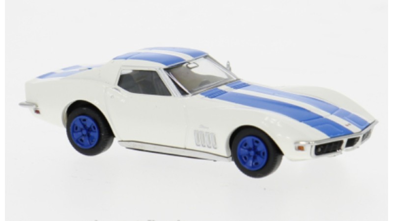 Brekina 1968-1972 Chevrolet Corvette C3 Coupe - White/Blue Stripes